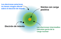 La electronegatividad es una propiedad química que describe la tendencia de un átomo o un grupo funcional de atraer electrones (o densidad de electrones) hacia sí mismo.[121] Si el enlace entre el sodio y el cloro en el cloruro de sodio fuera covalente, el par de electrones compartidos se sentiría atraído por el cloro porque la carga nuclear efectiva en los electrones externos es +7 en cloro pero solo es +1 en sodio. El par de electrones se atrae tan cerca del átomo de cloro que prácticamente se transfieren al átomo de cloro (un enlace iónico). Sin embargo, si el átomo de sodio fue reemplazado por un átomo de litio, los electrones no serán atraídos tan cerca del átomo de cloro como antes porque el átomo de litio es más pequeño, haciendo que el par de electrones se atraiga más fuertemente a la carga nuclear efectiva más cercana del litio. Por lo tanto, los átomos de metal alcalino más grandes (más abajo en el grupo) serán menos electronegativos ya que el par de enlace es menos atraído hacia ellos. Se espera que el francio sea una excepción.[122]