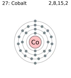 El cobalto (del alemán kobalt, voz derivada de kobolds, los «Duendes» que, según los mineros de Sajonia de la Edad Media, eran espíritus de la tierra que tenían embrujado el mineral, por lo que, aunque parecía mena de cobre, no producía este elemento con el tratamiento habitual[1]) es un elemento químico de número atómico 27 y símbolo Co situado en el grupo 9 de la tabla periódica de los elementos.[2][3]