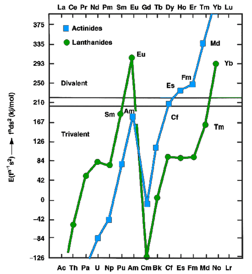 - ↑ Hulet, E. K. (1980). «Capítulo 12. Química de los actínidos más pesados: Fermium, Mendelevium, Nobelium, and Lawrencium». En Edelstein, Norman M., ed. Química y Espectroscopia de los Actínidos y de los Pantánidos. Simposio de la ACS 131. pp. 239-263. ISBN 9780841205680. doi:10.1021/bk-1980-0131.ch012.