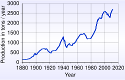 - ↑ U.S. Geological Survey (Mineral Commodity Summaries). 2021. Oro, Revisado el 1 de abril de 2021.