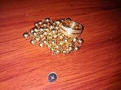 - El oro laminado es una lámina de oro que se ha aplicado a un metal de menor valor.[22]