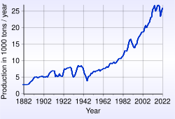 Producción en 2023 (mineral)[17](en toneladas/año) |