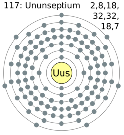 | Configuración electrónica | [Rn] 5f14 6d10 7s2 7p5 (predicción)[1] | |||||||||||||||||||||||||||||||||||||||||||||||||||||||||||||||||||||||||||||||||||||||||||||||||||||||||||||||||||||||||||||||||||||||||||||||||||||||