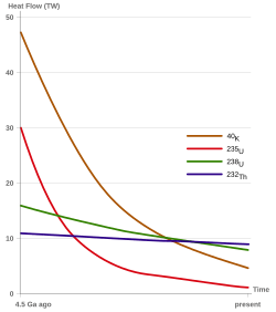 - ↑ Gando, A.; Gando, Y.; Ichimura, K.; Ikeda, H.; Inoue, K.; Kibe, Y.; Kishimoto, Y.; Koga, M.; Minekawa, Y.; Mitsui, T.; Morikawa, T.; Nagai, N.; Nakajima, K.; Nakamura, K.; Narita, K.; Shimizu, I.; Shimizu, Y.; Shirai, J.; Suekane, F.; Suzuki, A.; Takahashi, H.; Takahashi, N.; Takemoto, Y.; Tamae, K.; Watanabe, H.; Xu, B. D.; Yabumoto, H.; Yoshida, H.; Yoshida, S.; Enomoto, S.; Kozlov, A.; Murayama, H.; Grant, C.; Keefer, G.; Piepke, A.; Banks, T. I.; Bloxham, T.; Detwiler, J. A.; Freedman, S. J.; Fujikawa, B. K.; Han, K.; Kadel, R.; O’Donnell, T.; Steiner, H. M.; Dwyer, D. A.; McKeown, R. D.; Zhang, C.; Berger, B. E.; Lane, C. E.; Maricic, J.; Miletic, T.; Batygov, M.; Learned, J. G.; Matsuno, S.; Sakai, M.; Horton-Smith, G. A.; Downum, K. E.; Gratta, G.; Tolich, K.; Efremenko, Y.; Perevozchikov, O.; Karwowski, H. J.; Markoff, D. M.; Tornow, W.; Heeger, K. M.; Decowski, M. P. (September 2011). «Partial radiogenic heat model for Earth revealed by geoneutrino measurements». Nature Geoscience 4 (9): 647-651. Bibcode:2011NatGe...4..647K. doi:10.1038/ngeo1205. Archivado desde el original el 17 de abril de 2023. Consultado el 14 de agosto de 2022.