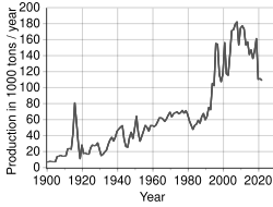 - ^ U.S. Geological Survey, Mineral Commodity Summaries, January 2022. Antimony (PDF). [1 February 2022]. (原始内容存档 (PDF)于2022-10-09).