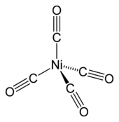 四羰基鎳(Ni(CO)4)是由路德維希·蒙德所發現的[21]。它在室溫下是一種具揮發性的液體,而且毒性猛烈。四羰基鎳在加熱後(180 °C)會分解成鎳與一氧化碳。[22]